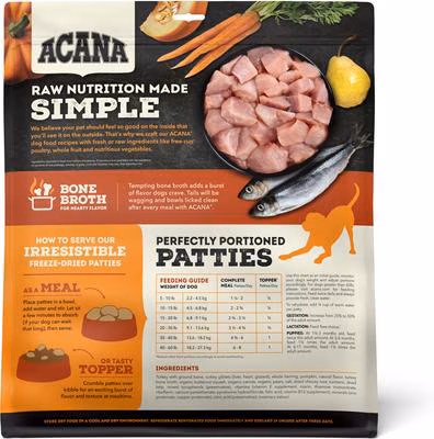 - ACANA Freeze-Dried Patties help satisfy your dog’s natural cravings.
